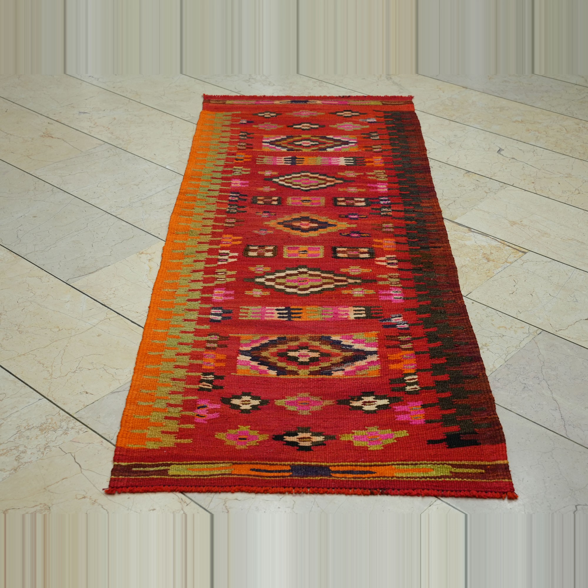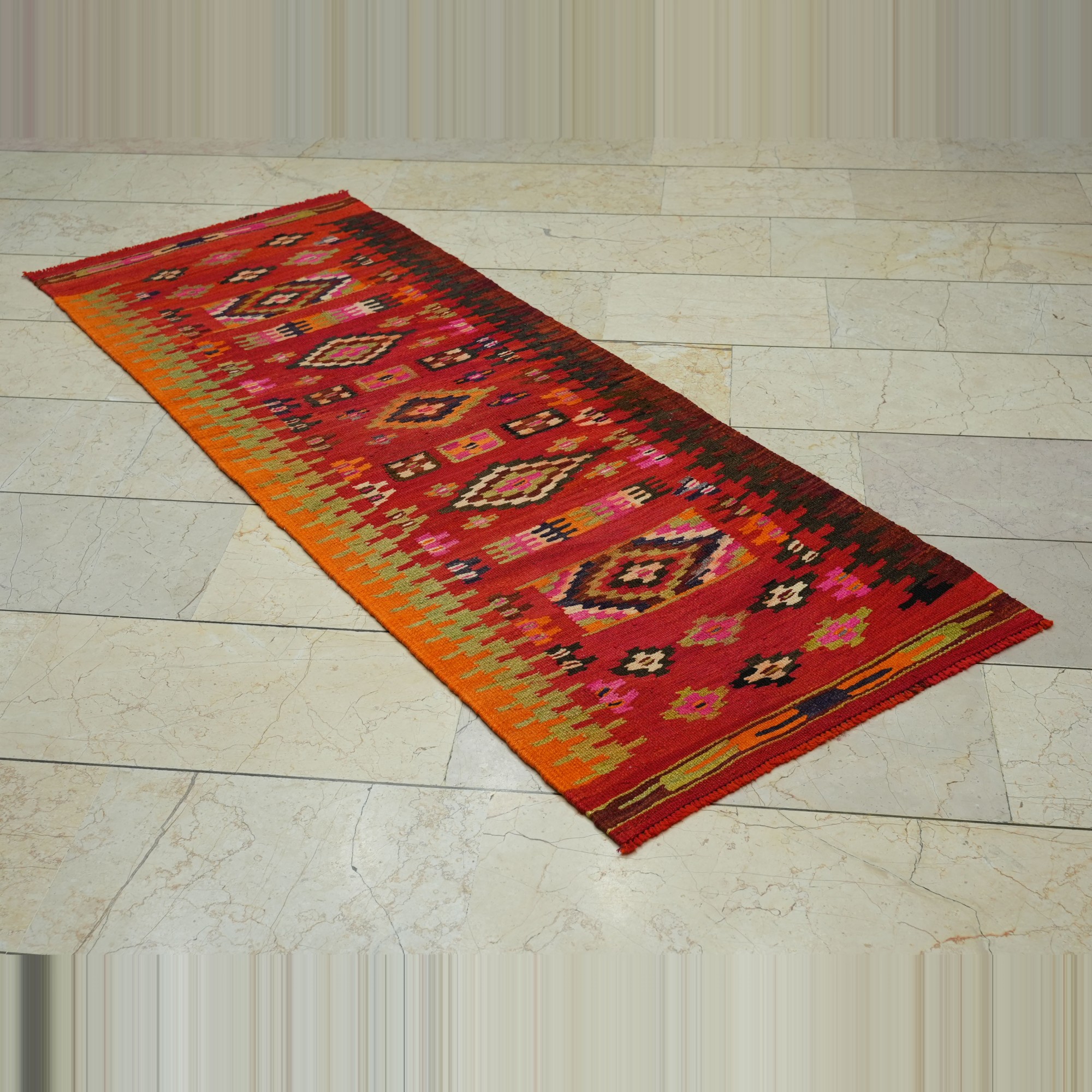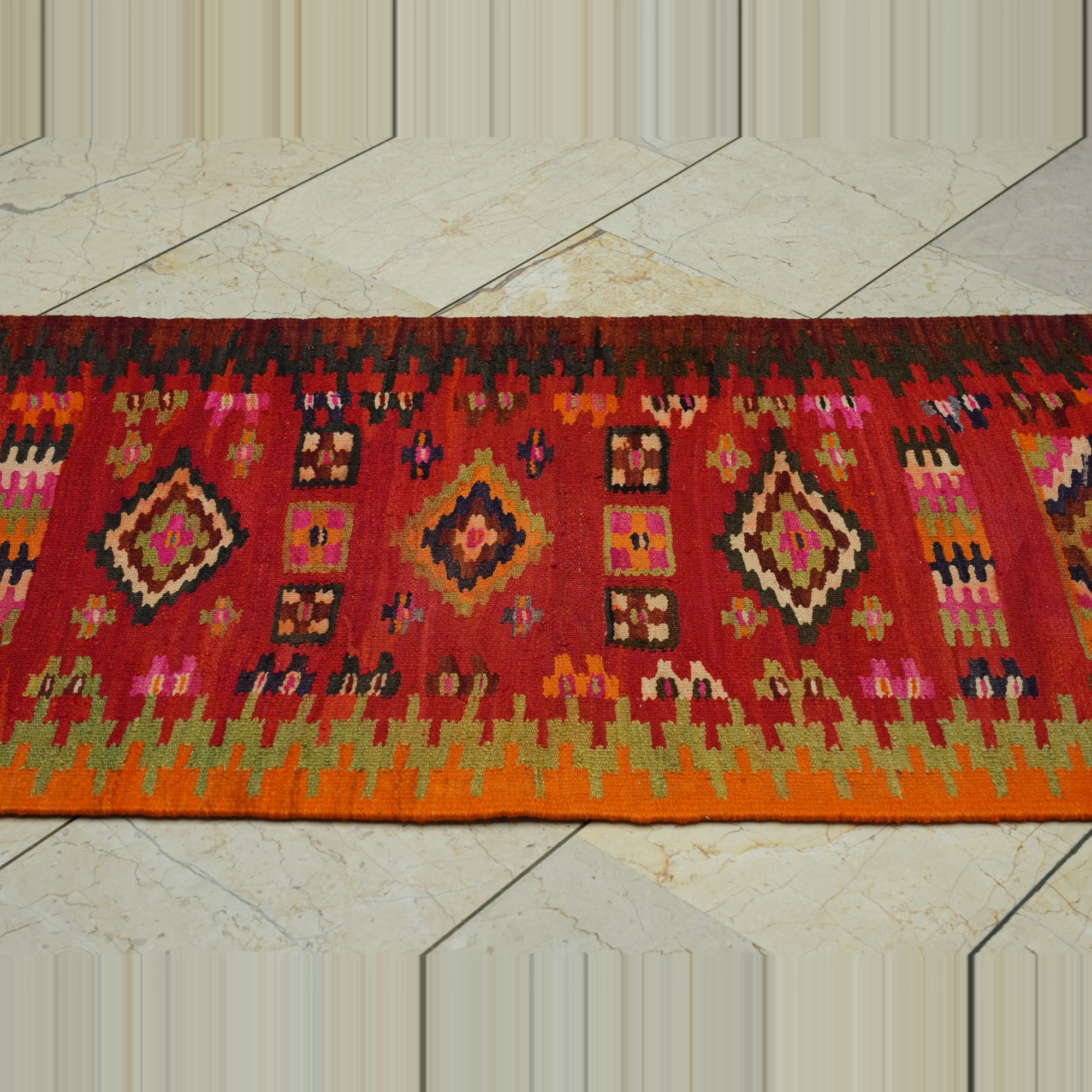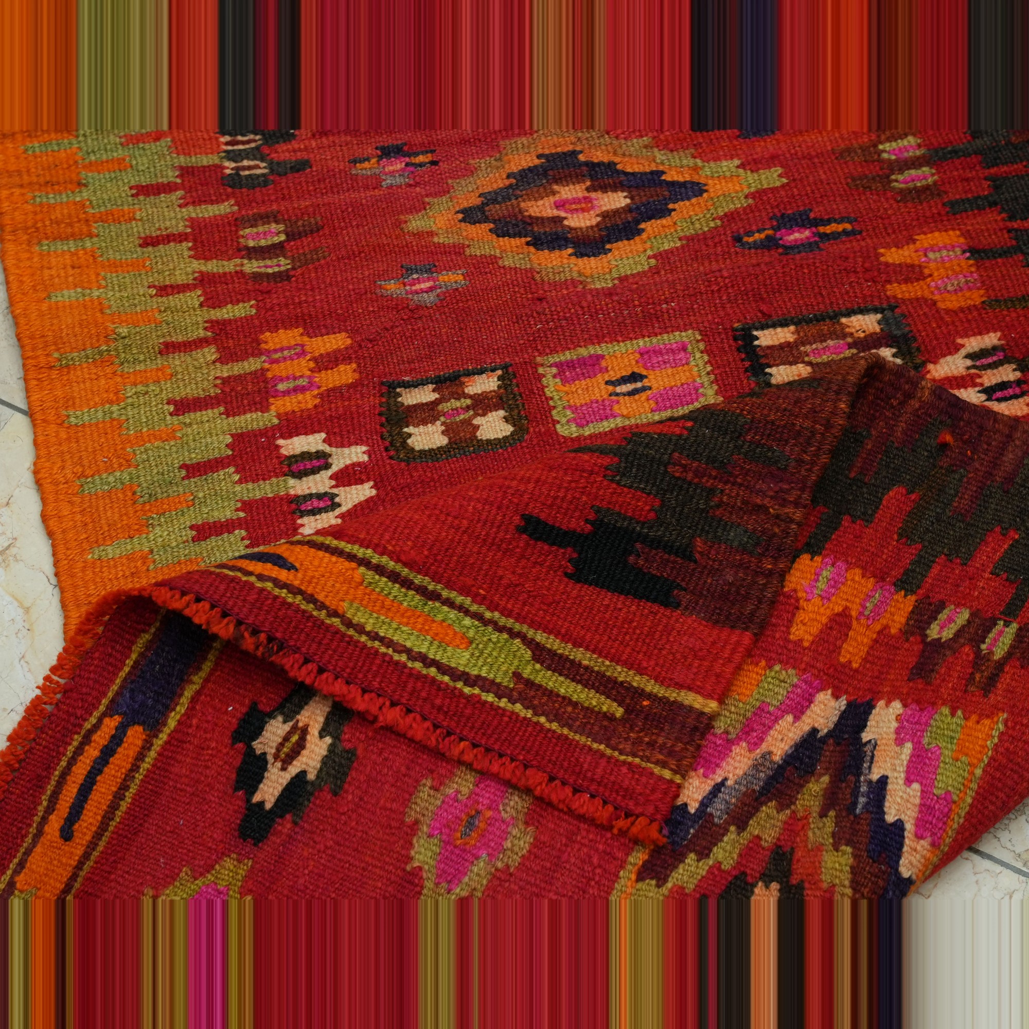 2.4x6.5 Orange Turkish Kilim Rug Runner