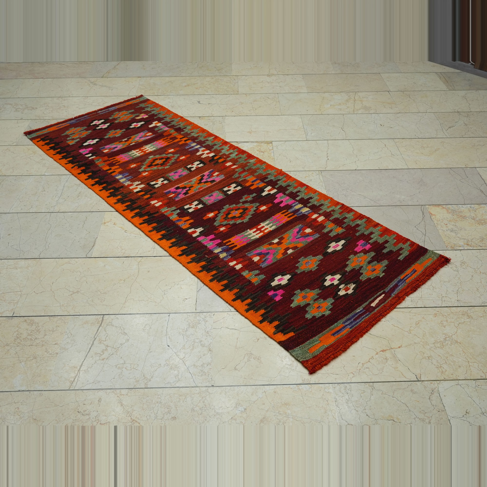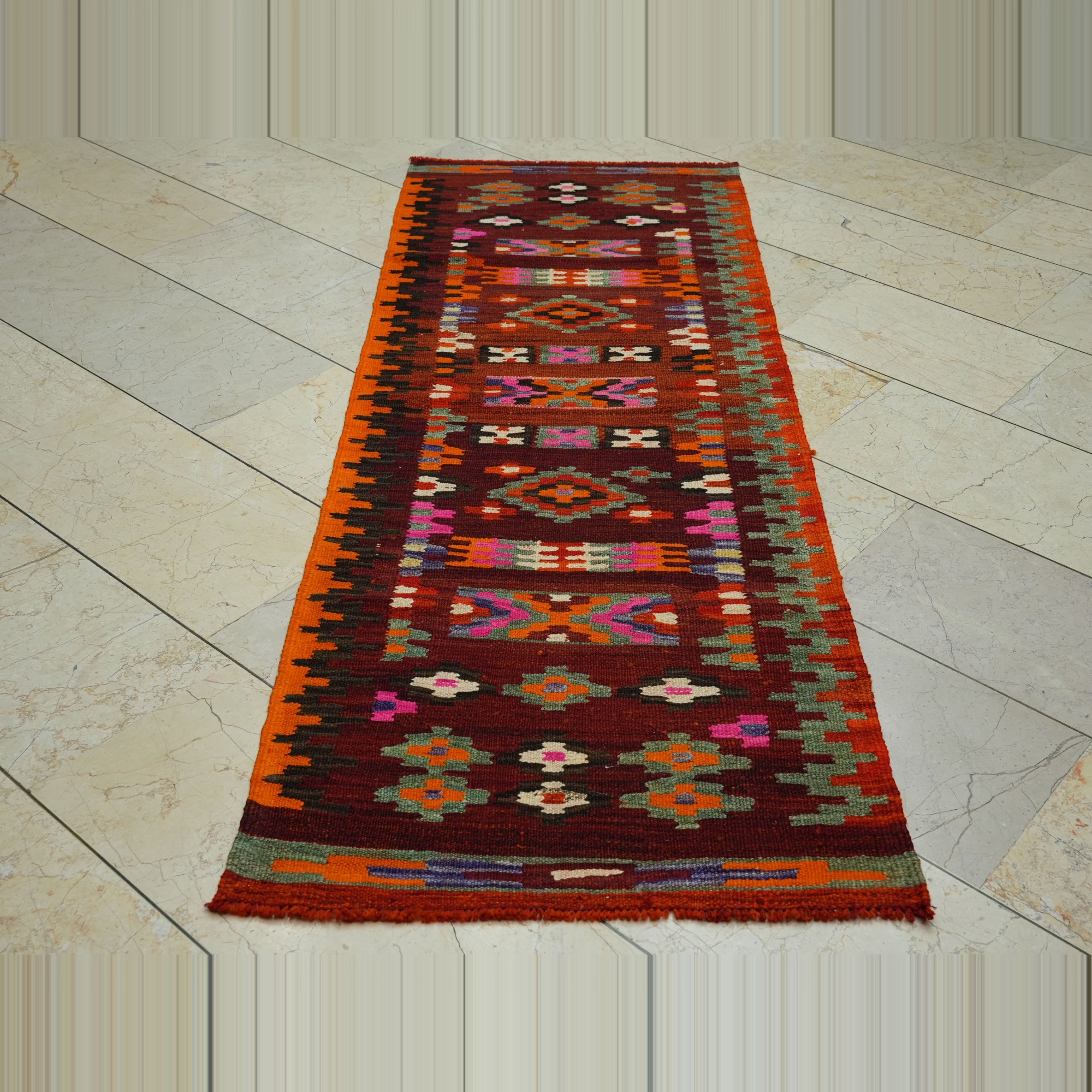 2,4x7 Turkish Kilim Rug Runner.