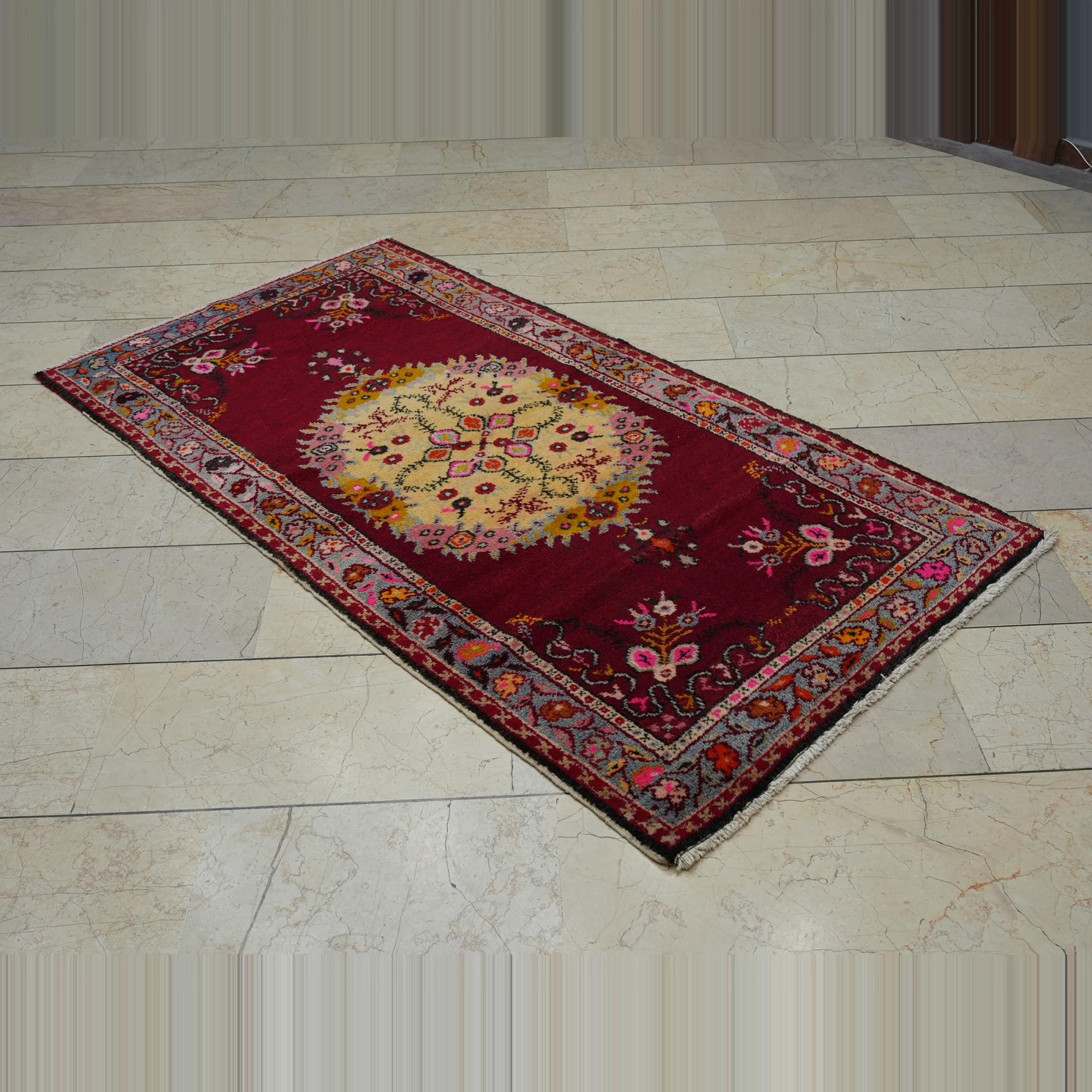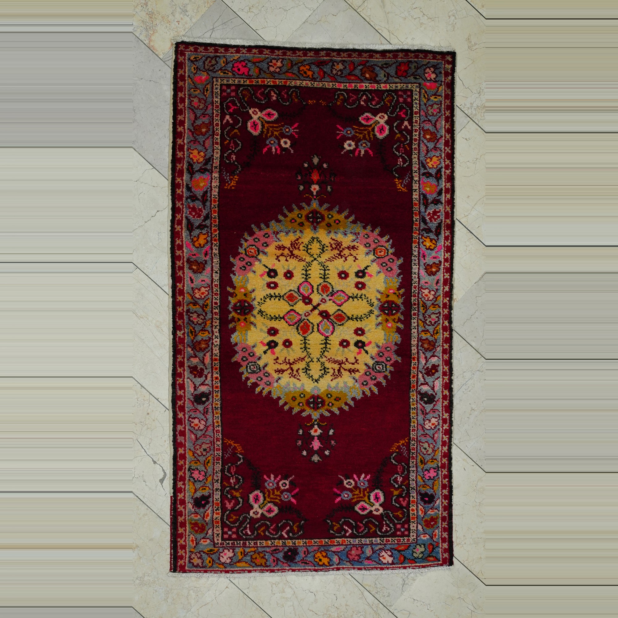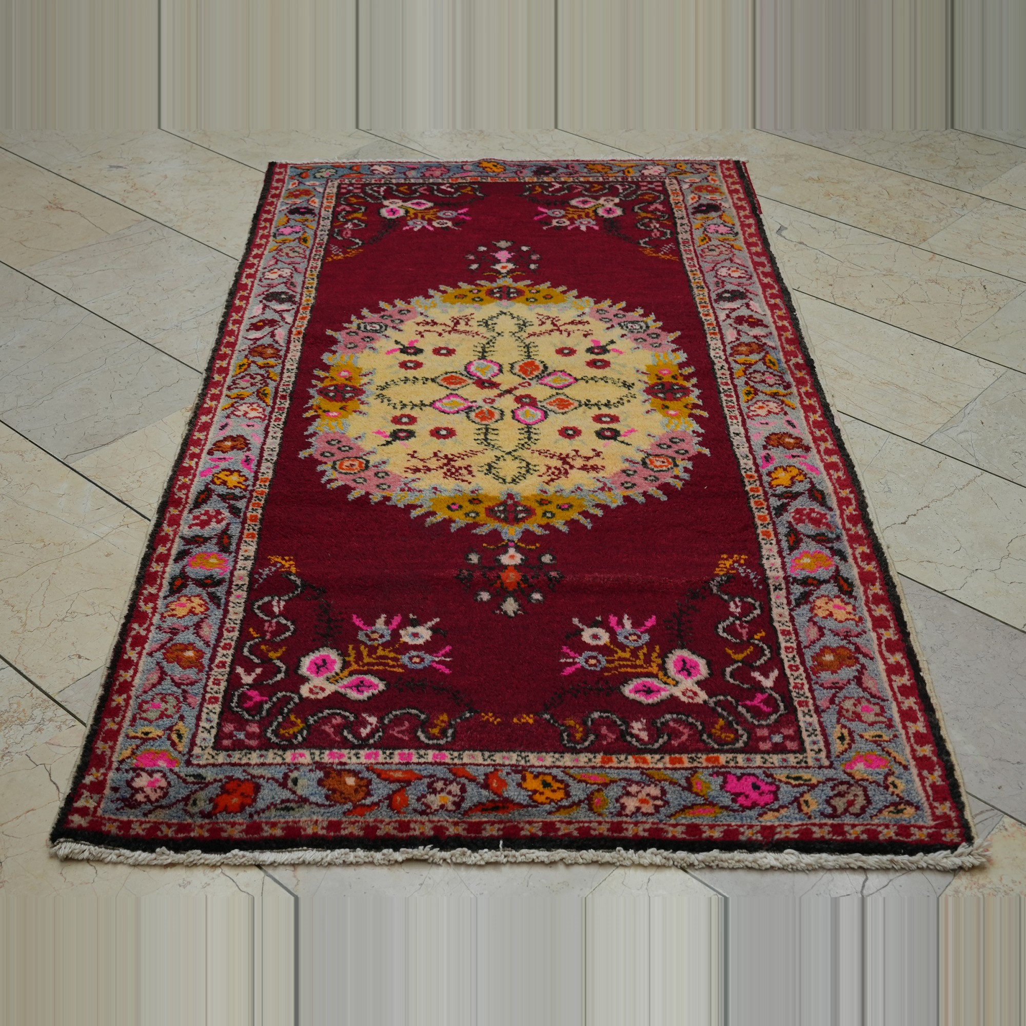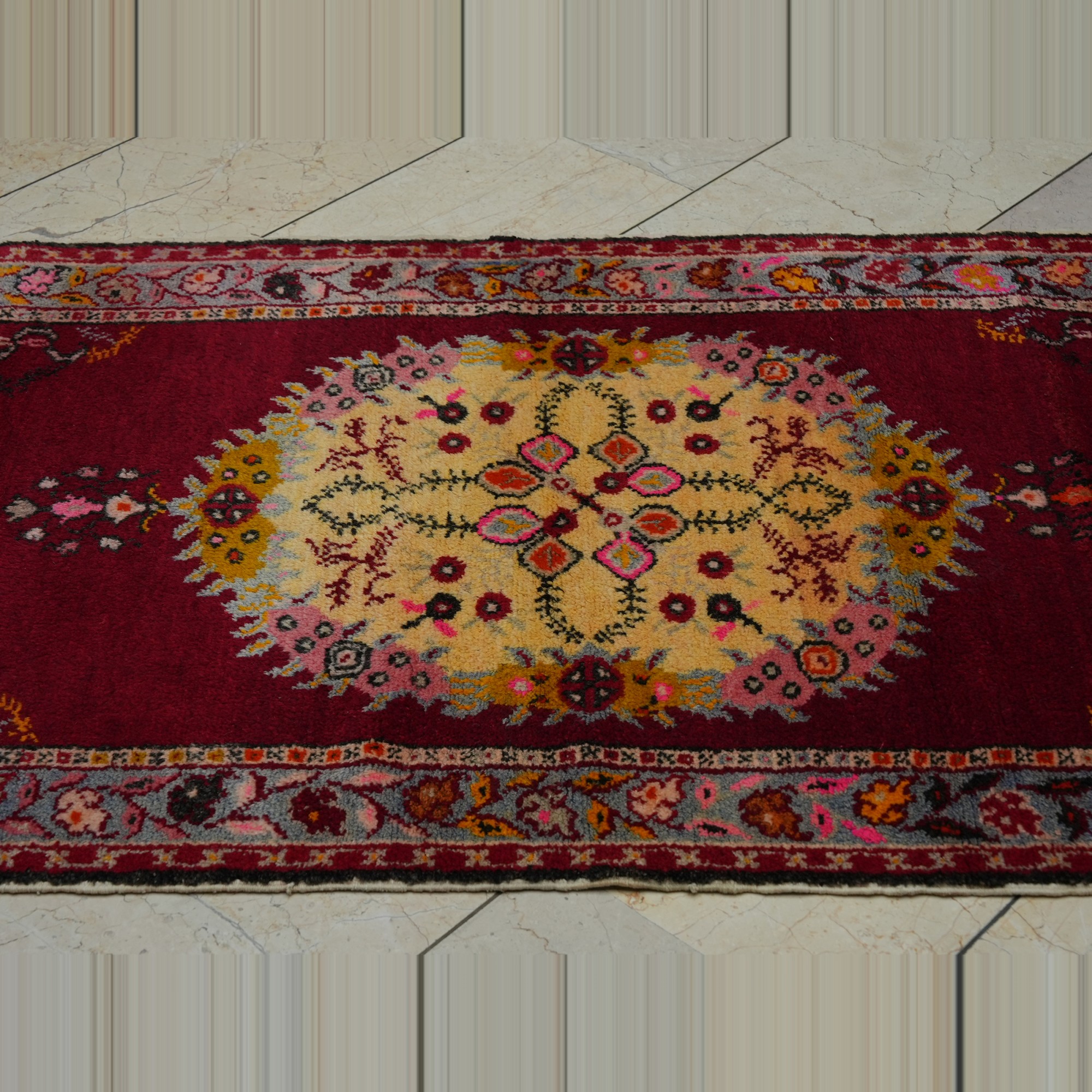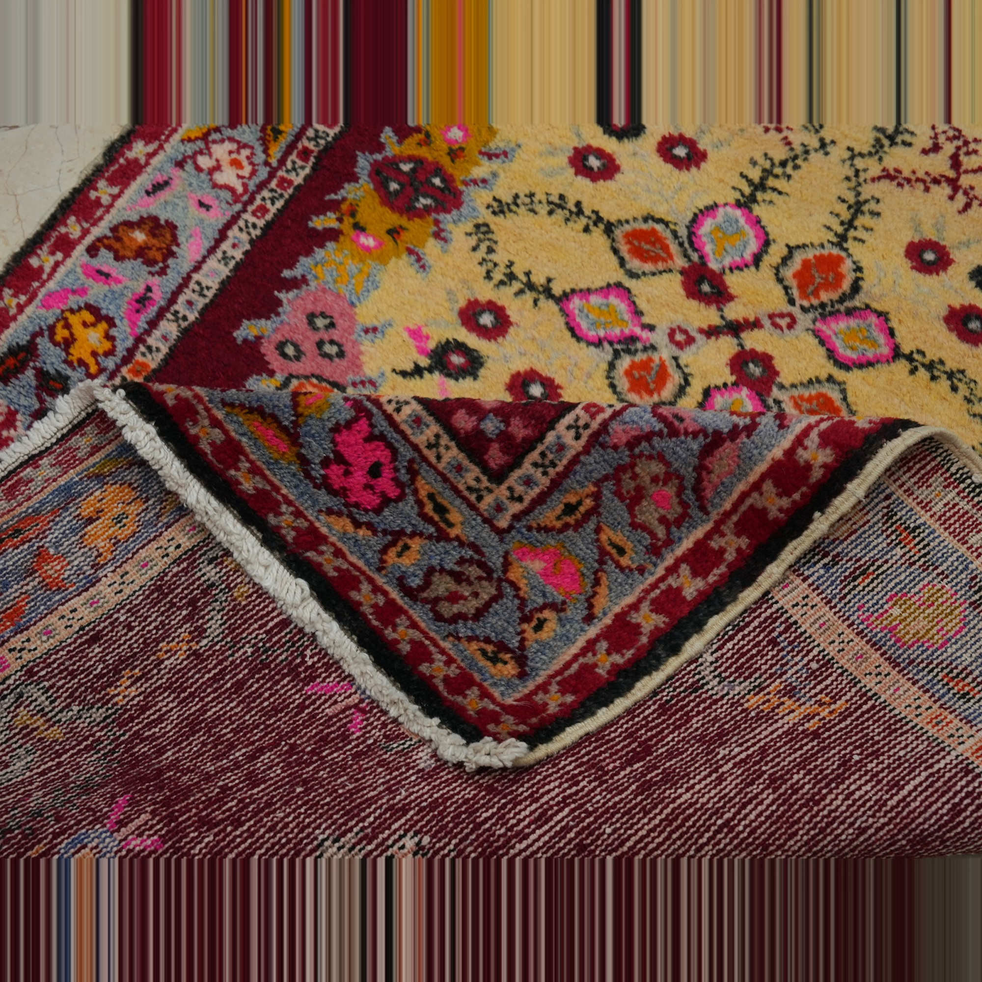 This double knotted carpet orginating in Denizli, Turkey is from the 1960s. The condition of this carpet is excellent and would provide a beautiful pop of color to any interior space.