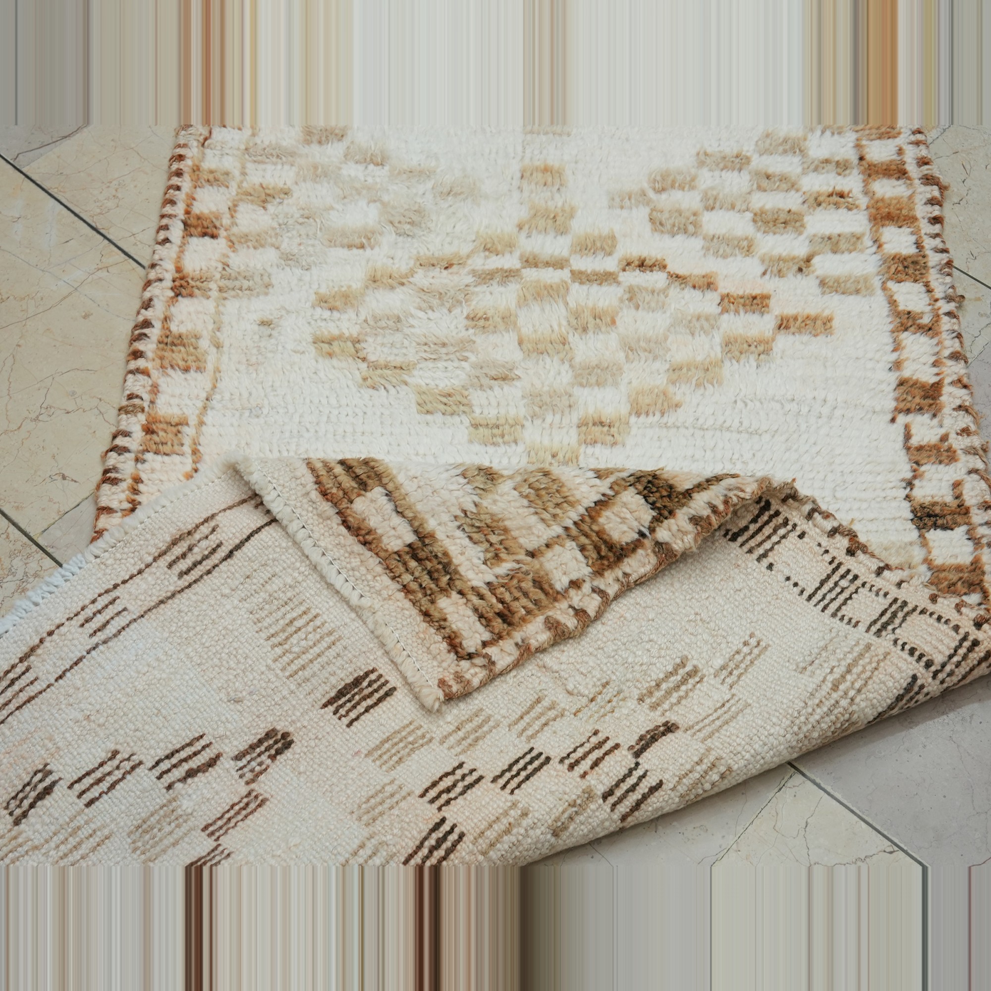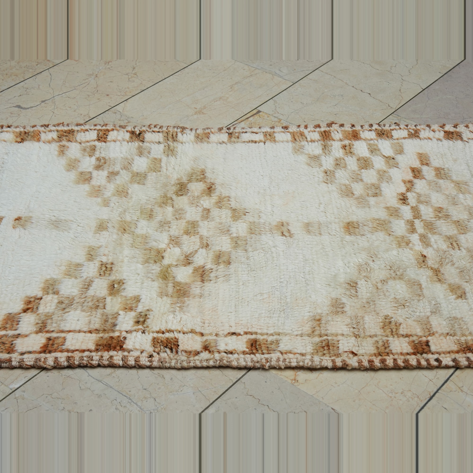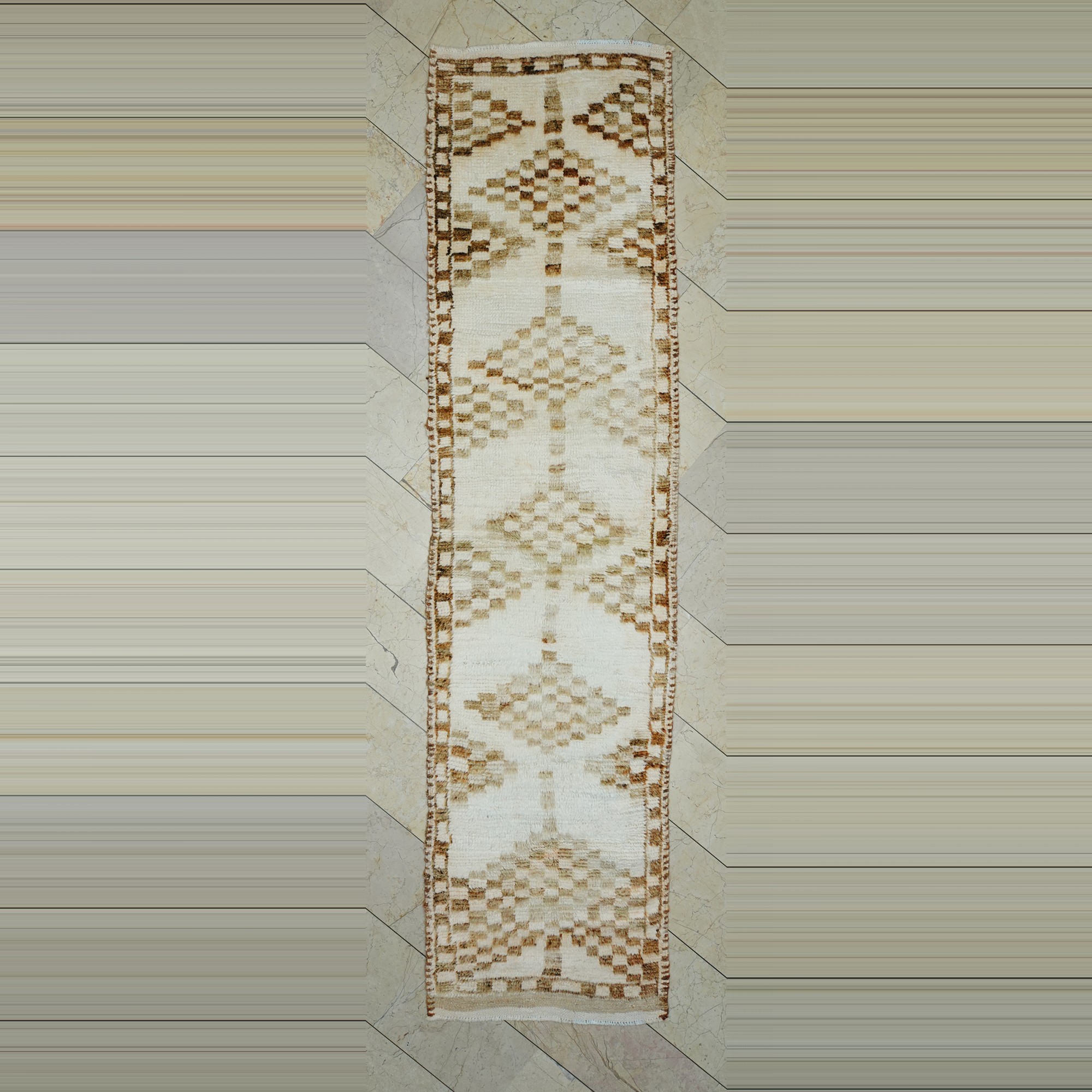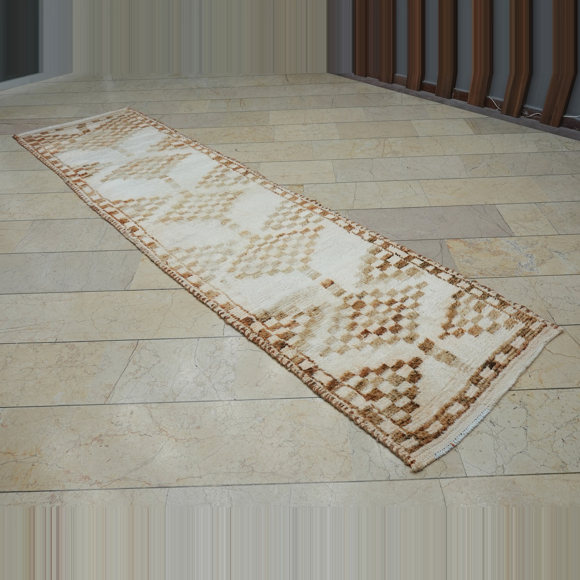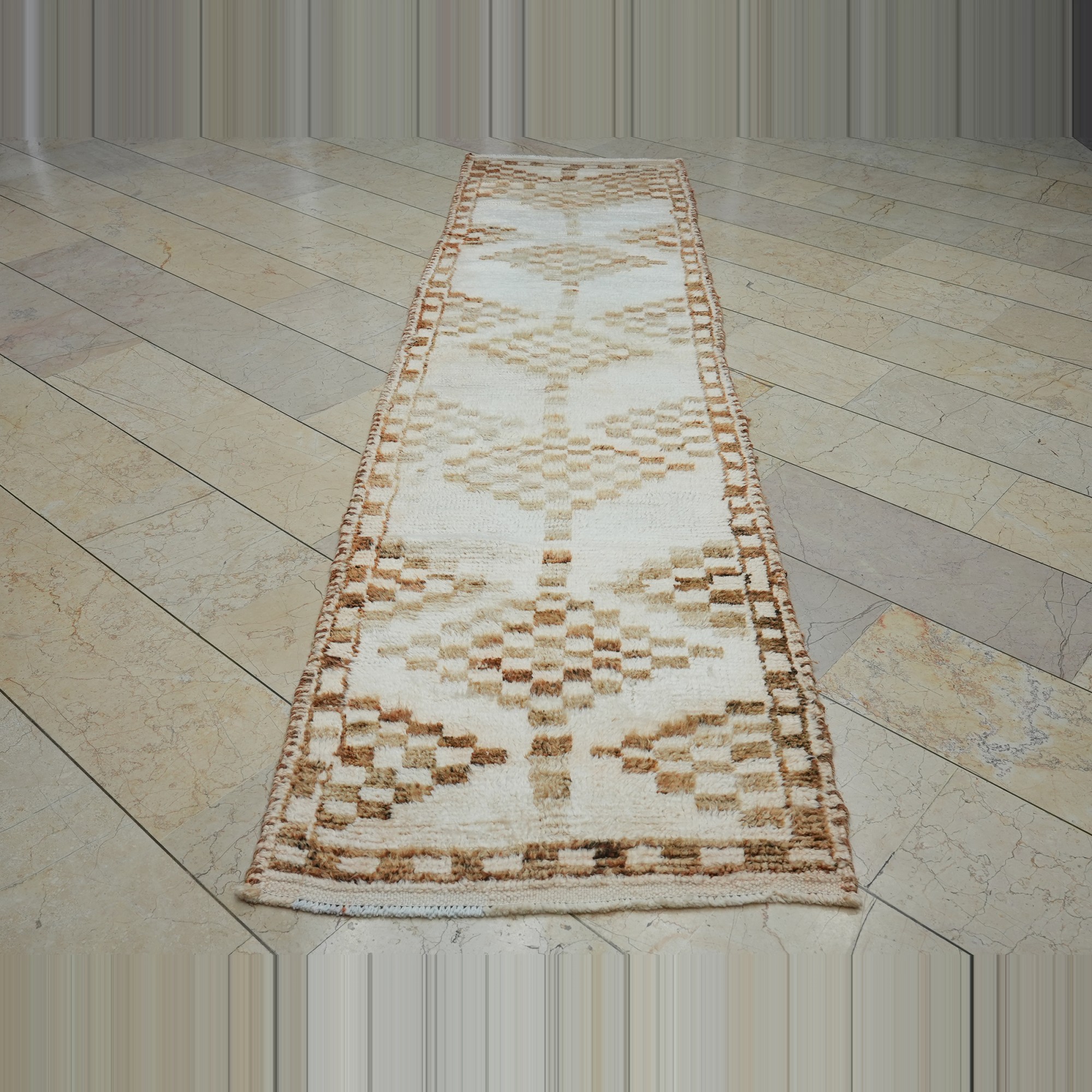 3x11 Brown White Soft Wool Turkish Rug Runner