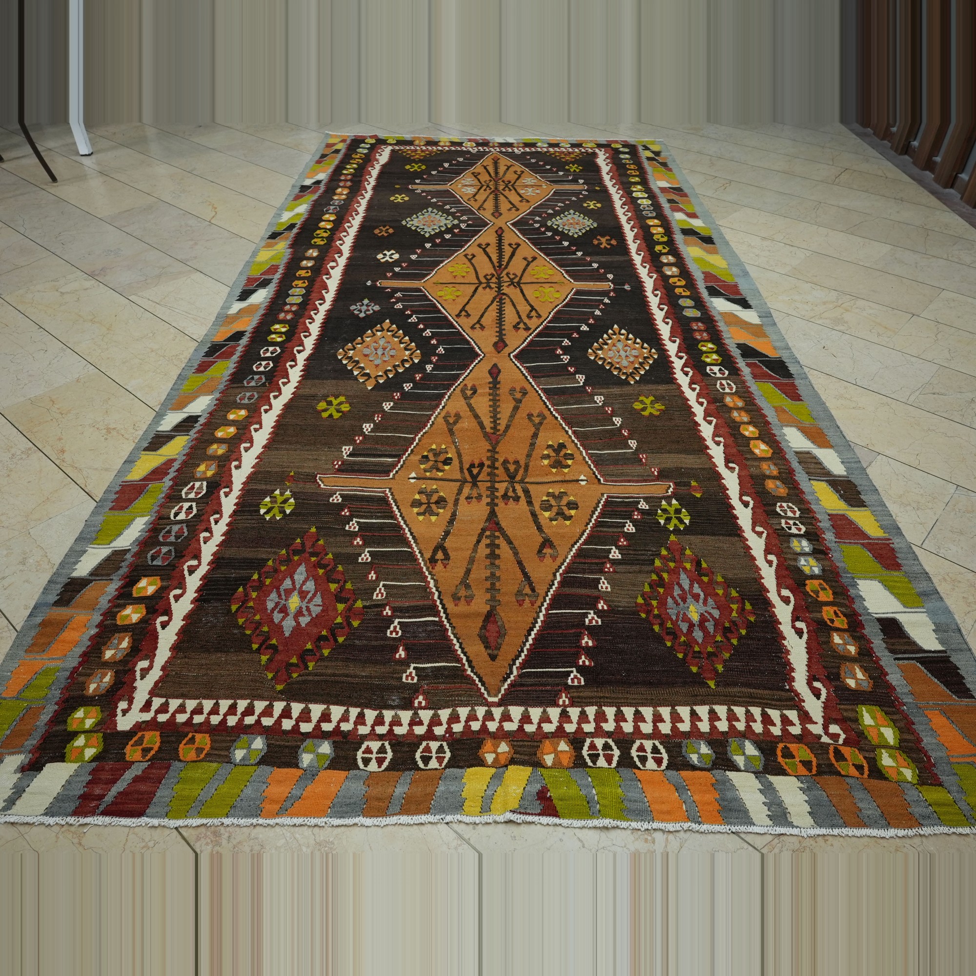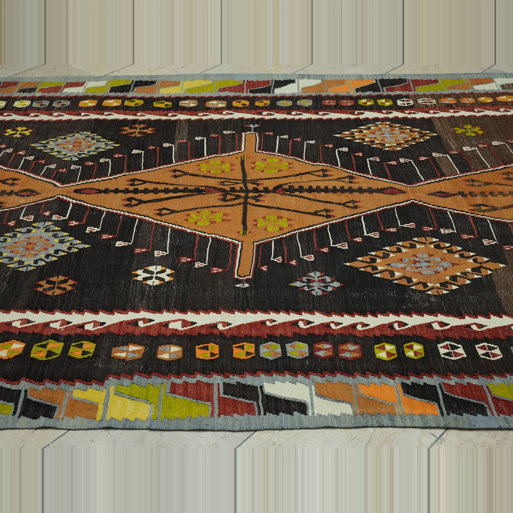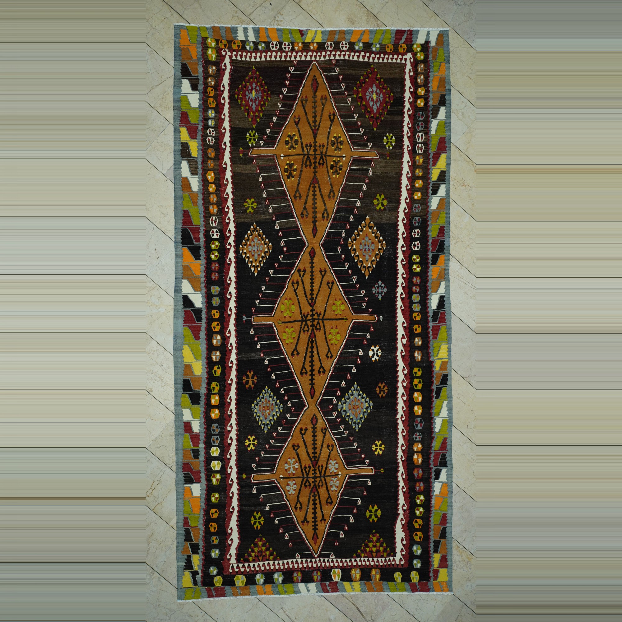 This flat-weave kilim orginating in sivas sarkisla, Turkey is from the 1930s. The condition of this kilim is excellent and would provide a beautiful pop of color to any interior space.