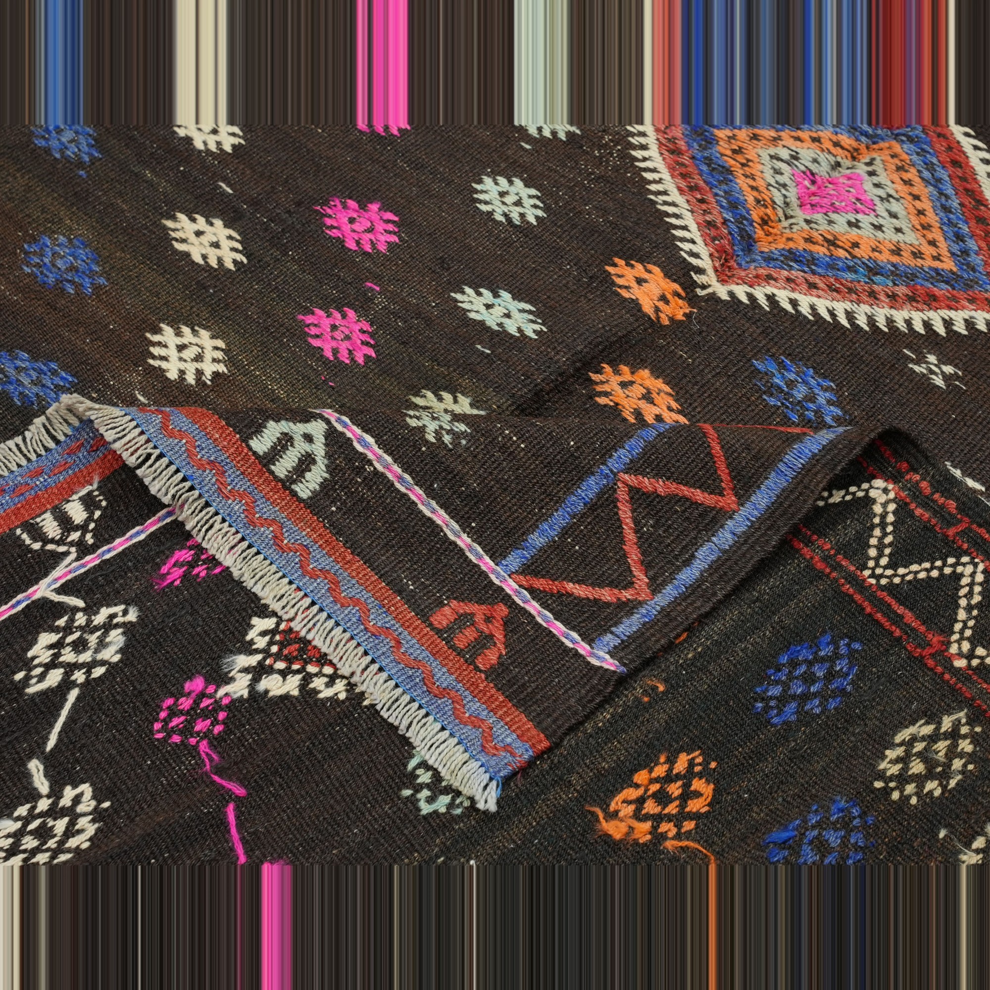 This flat-weave kilim orginating in Konya, Turkey is from the 1960s. The condition of this kilim is excellent and would provide a beautiful pop of color to any interior space.