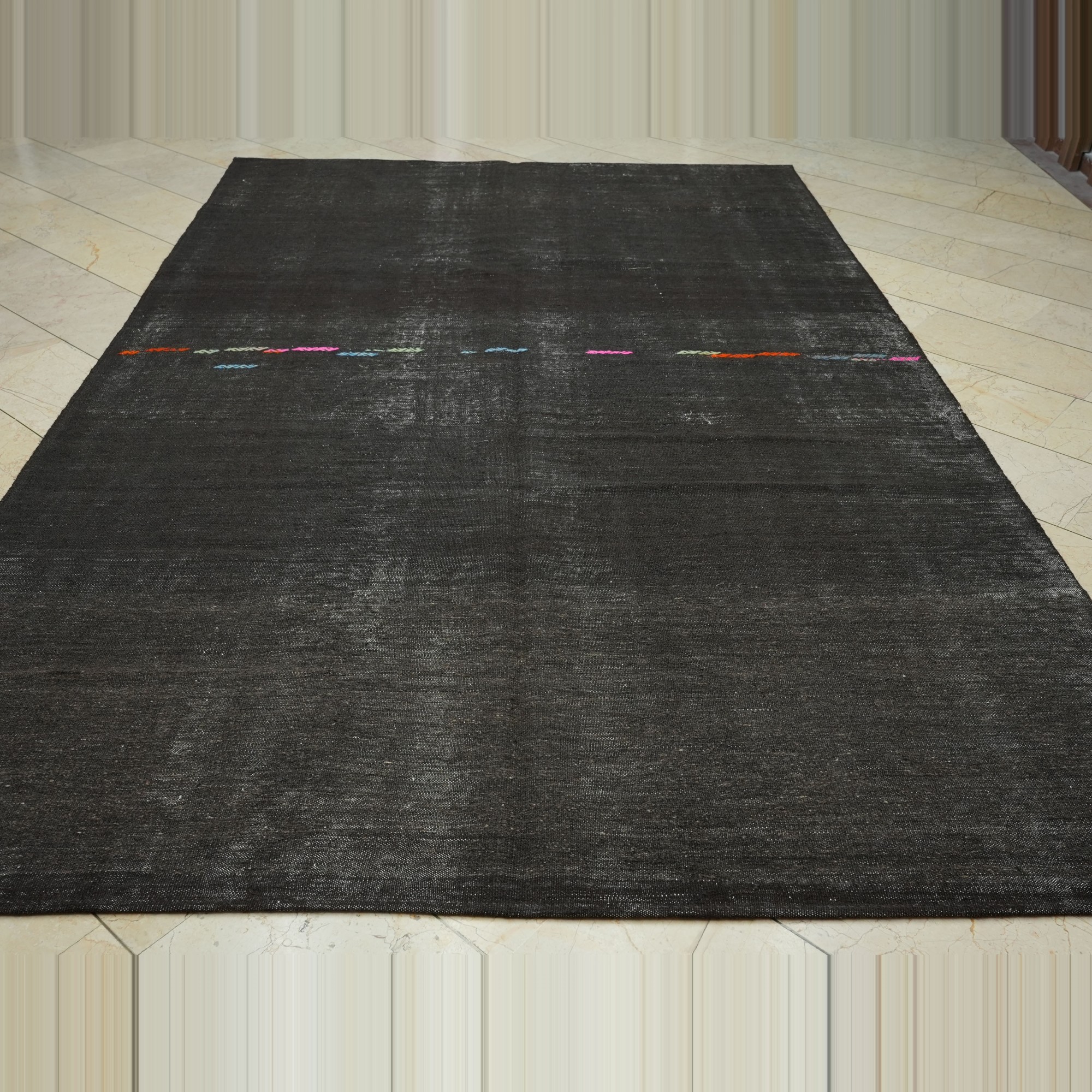 This flat-weave kilim orginating in Konya, Turkey is from the 1960s. The condition of this kilim is excellent and would provide a beautiful pop of color to any interior space.