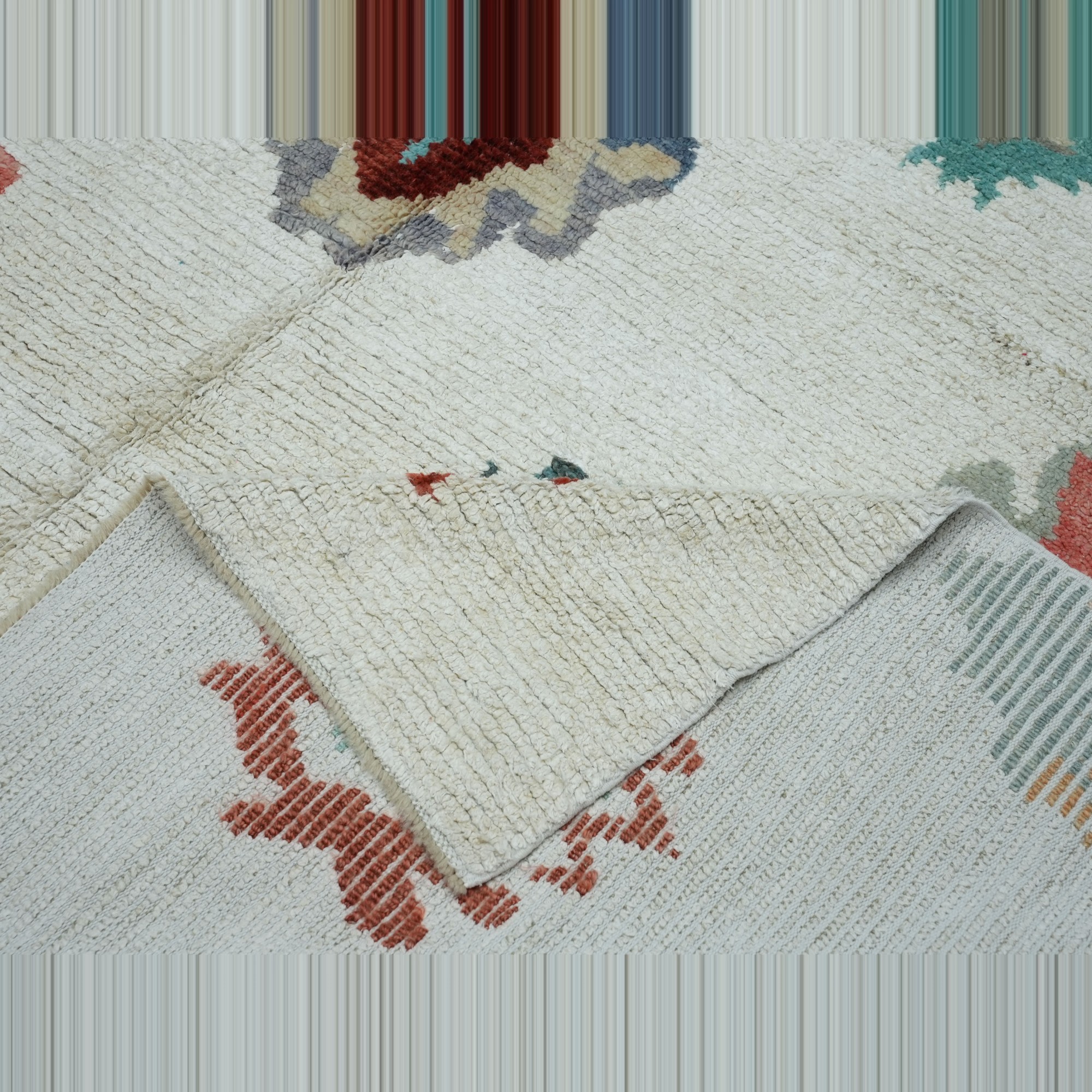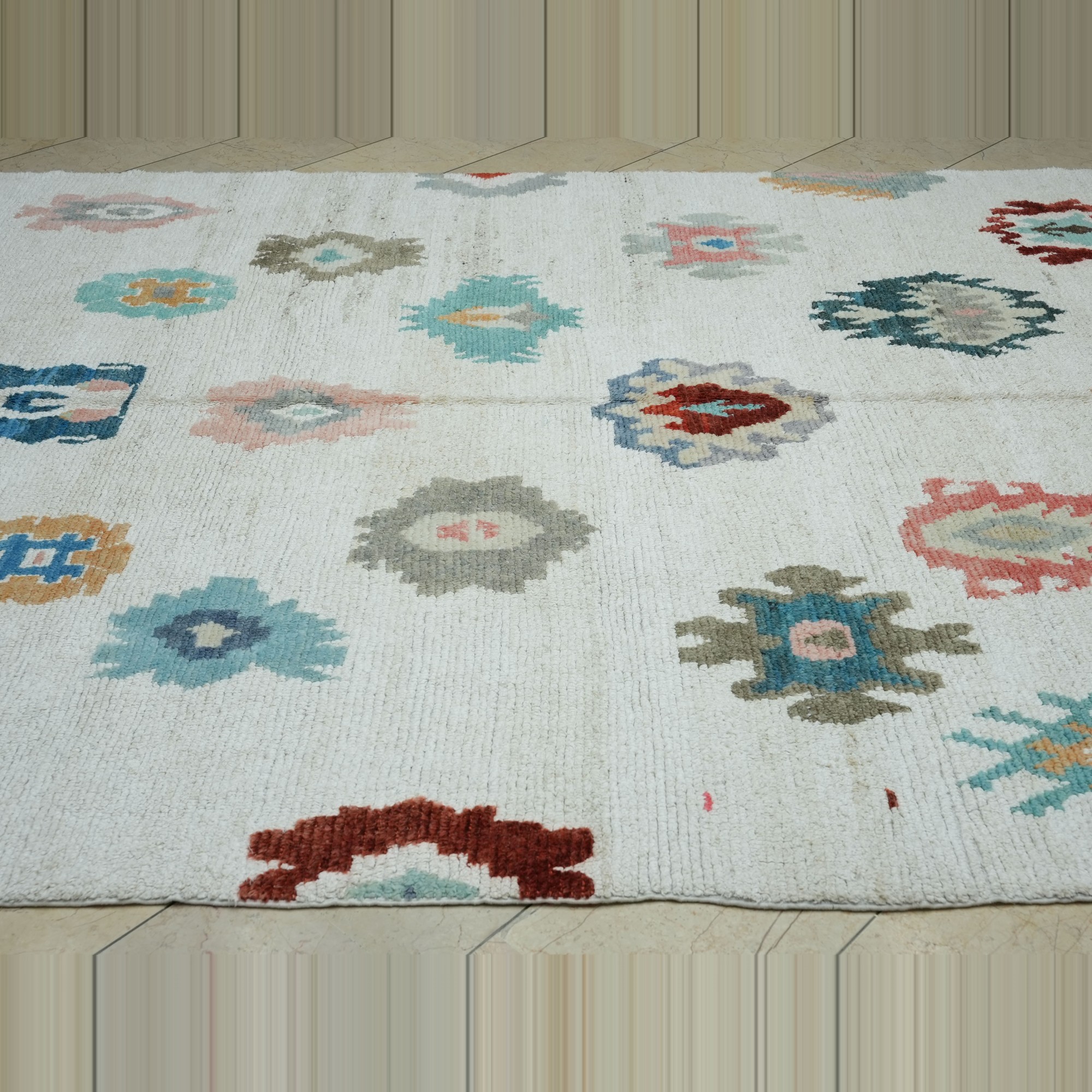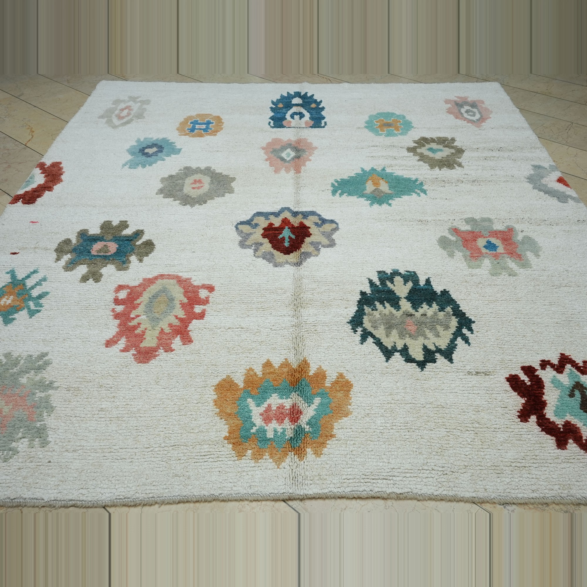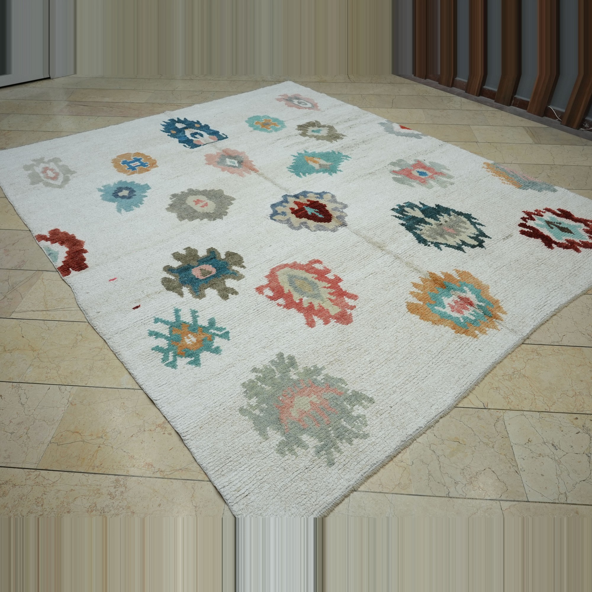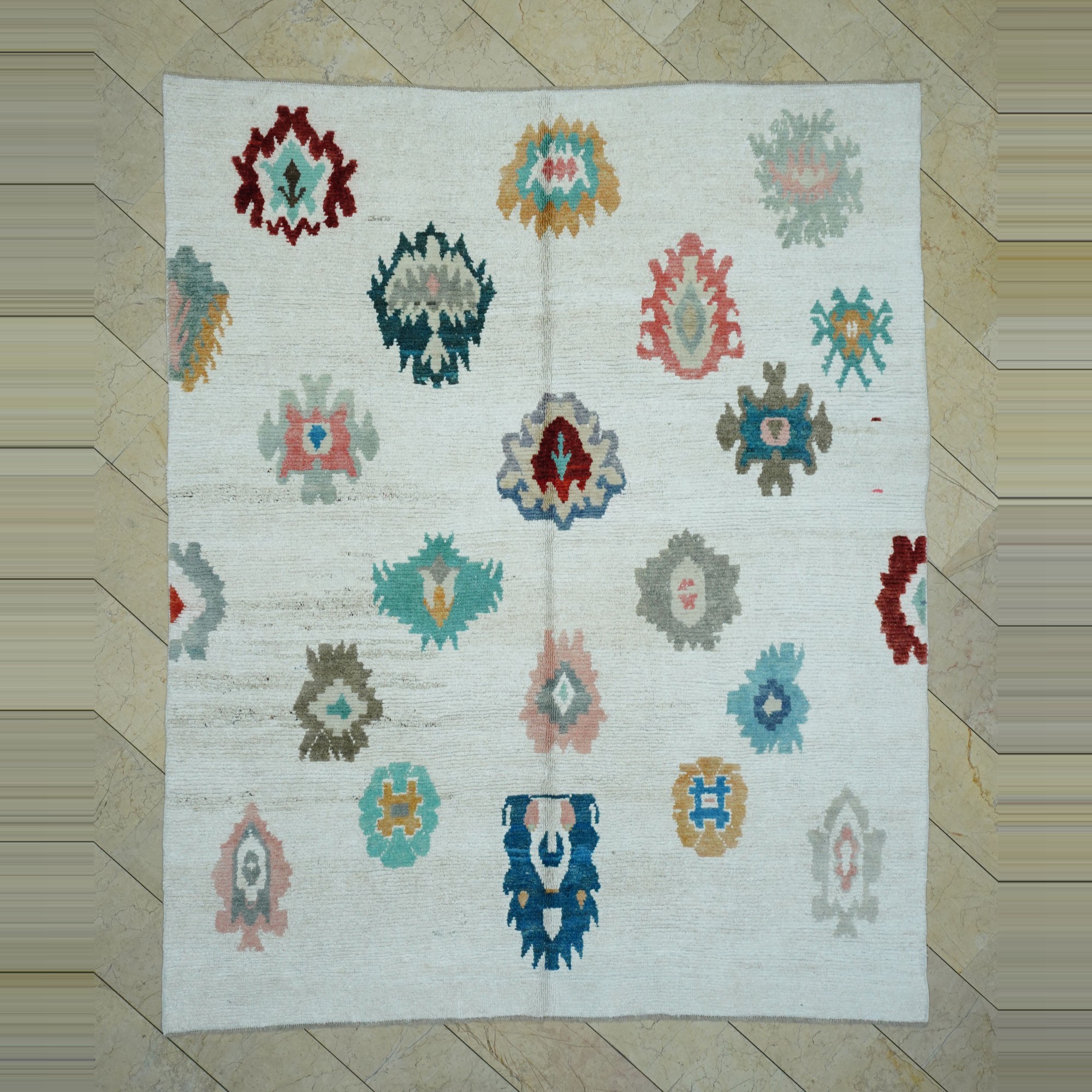 This double knotted hemp rug was designed and made by Oldnewrug team. We use old hemp, wool and goat hair yarns to create this artisan work. The white color is organic hemp, the brown color is organic goat hair, and the other colors are organic wool. If you request your own rug design and size, please contact with us. We can make your dreams come true.