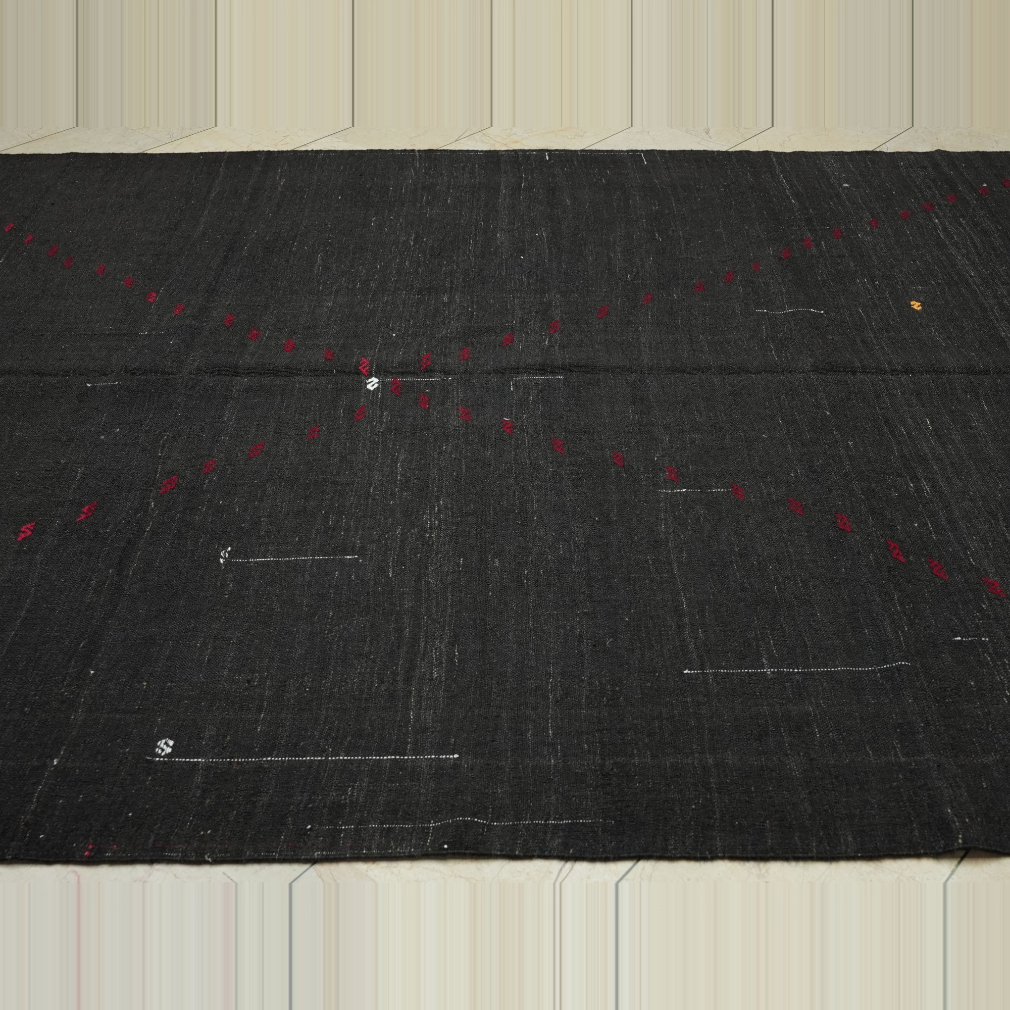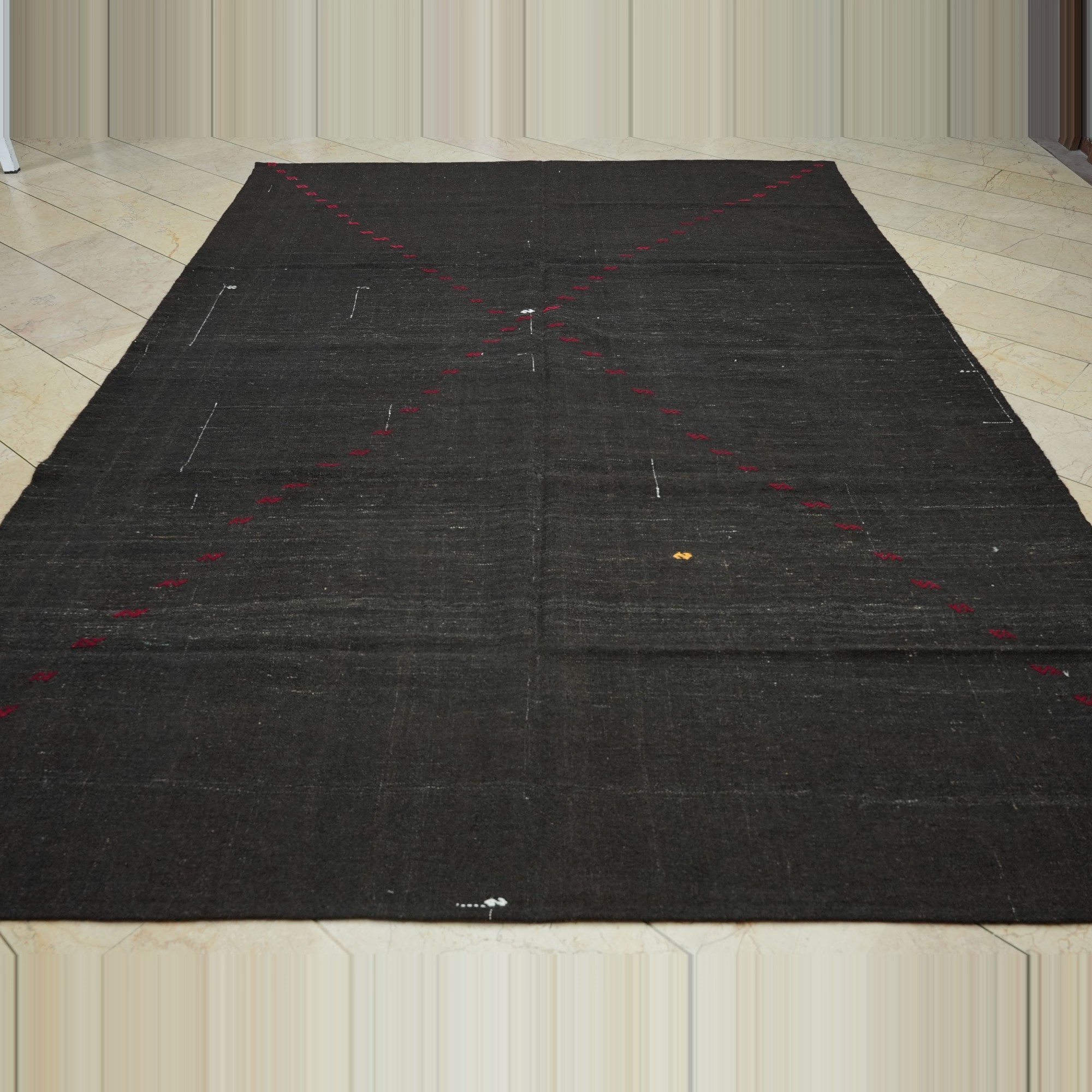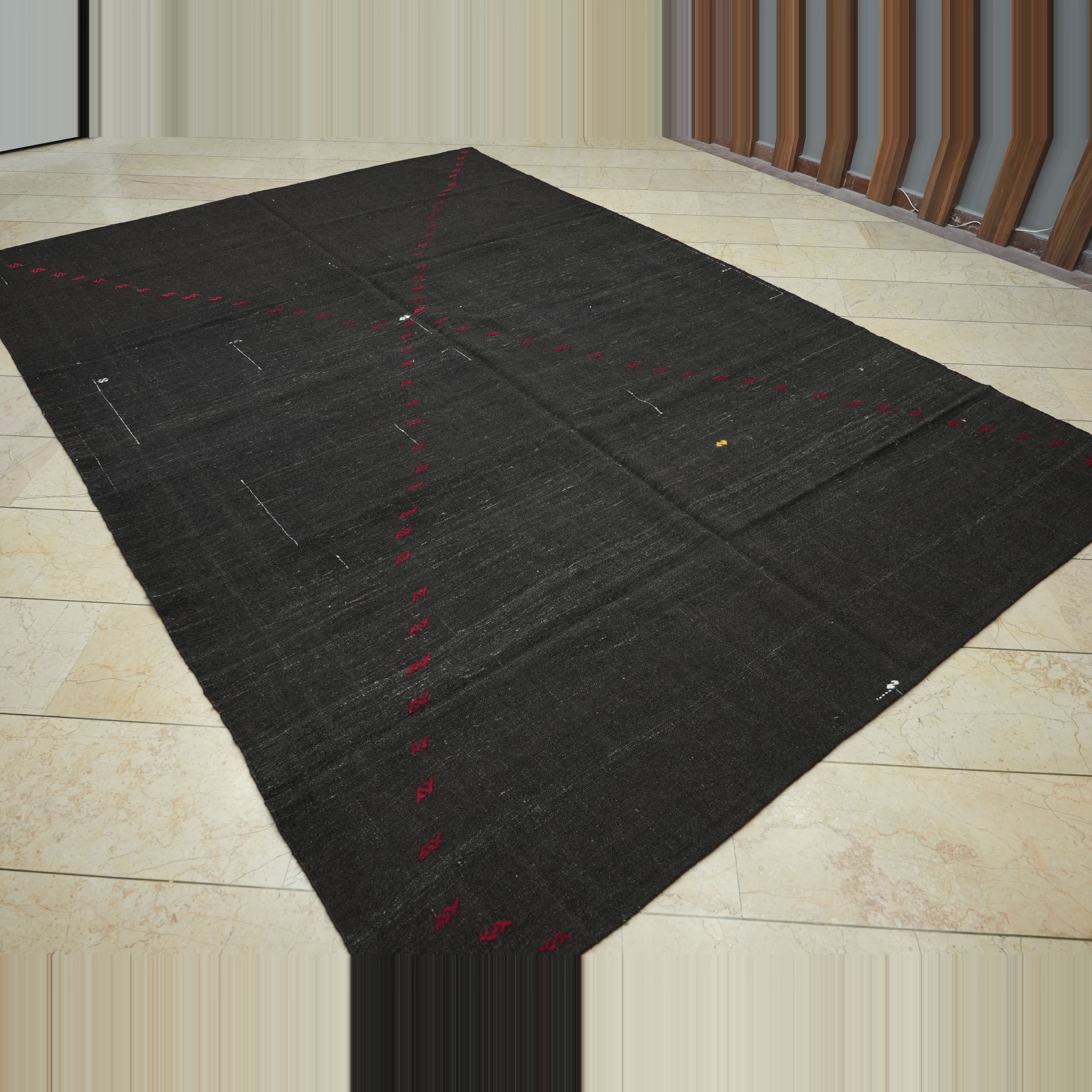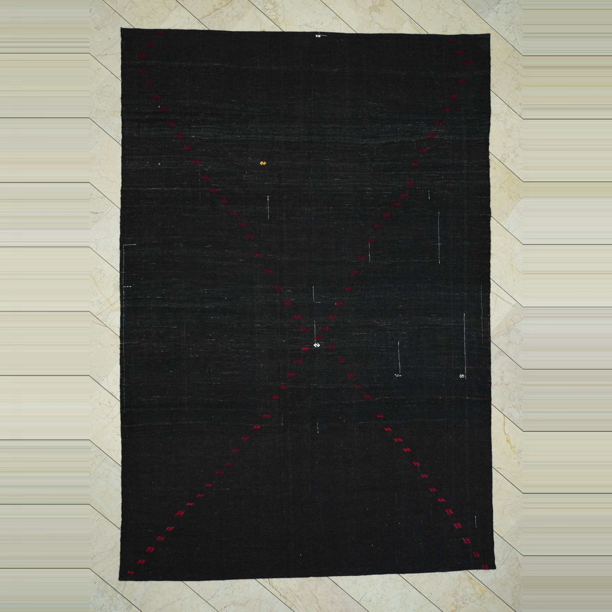 8x11 Dark Brown Goat Hair Kilim Rug.
